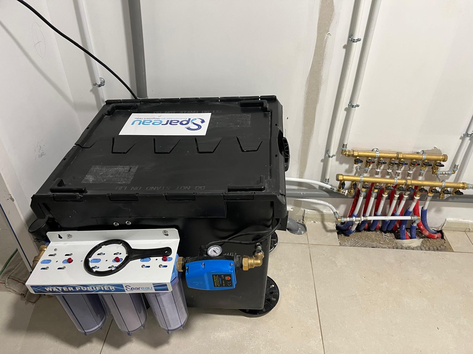 Un kit de recyclage des eaux grises compact et fonctionnel à installer simplement .